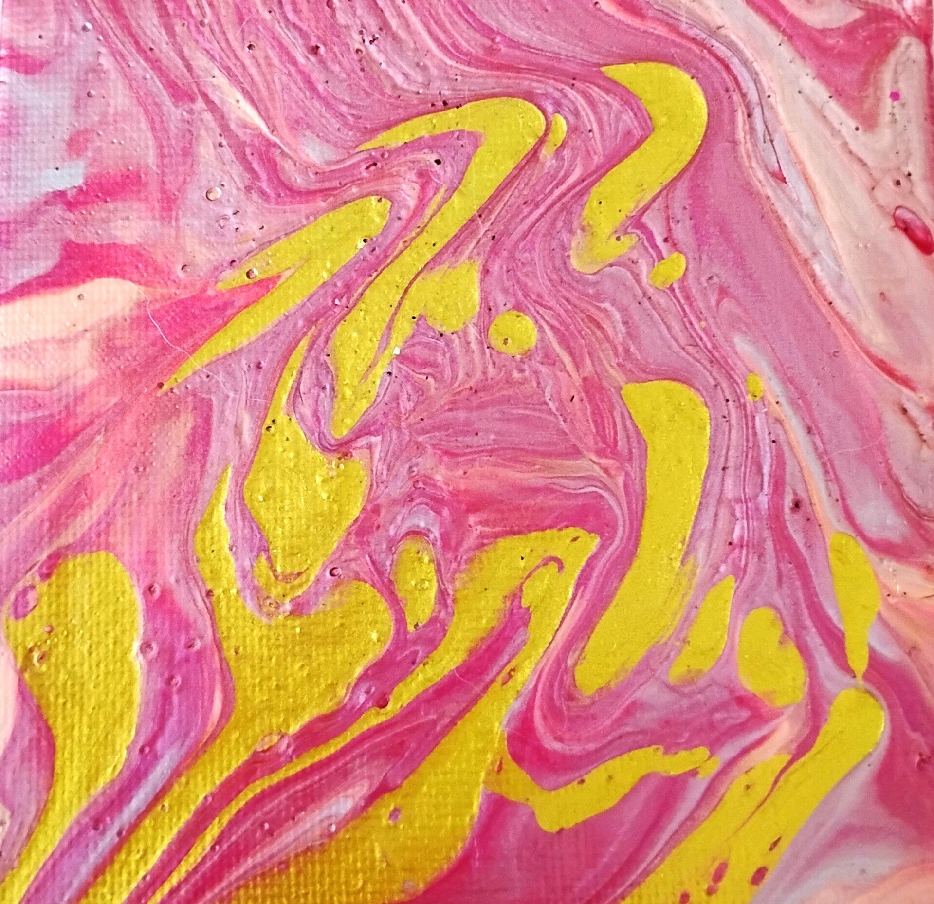 "Gold Lizard" Mini Abstract Painting on 3 x 3 on Stretched Canvas with Small Easel