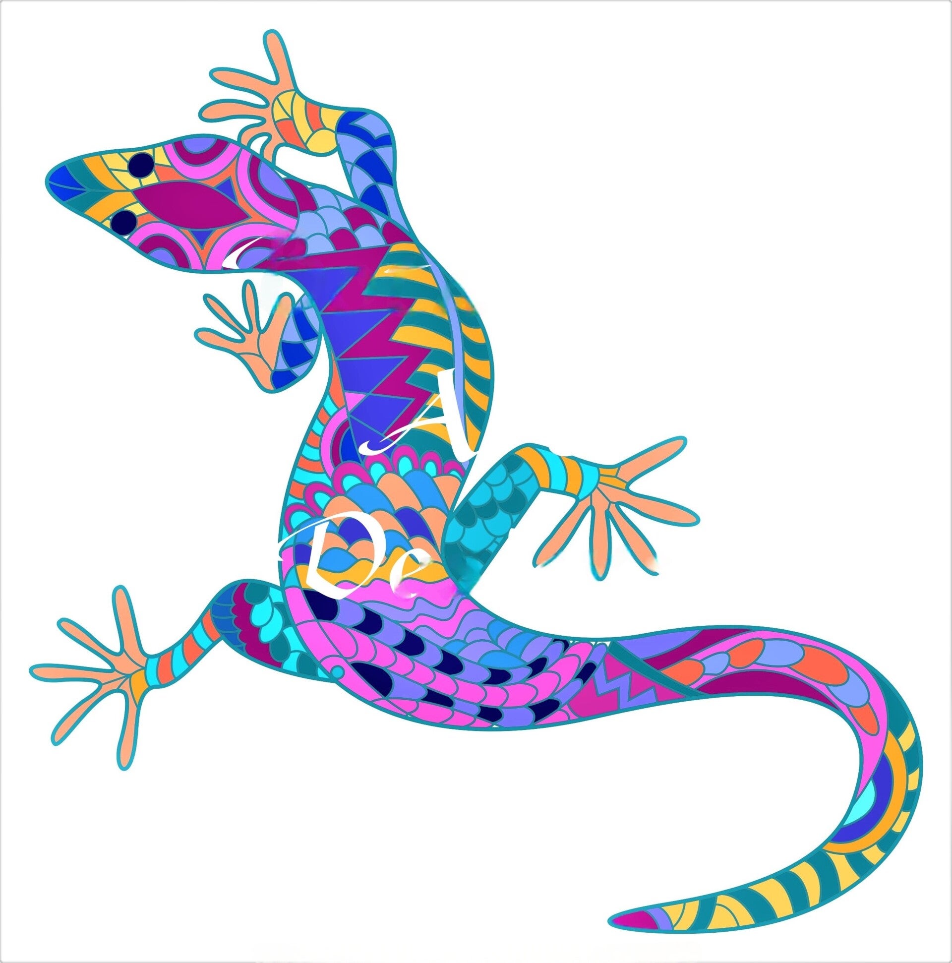 "Gecko" Whimsical Design Print in 8 x 10 White Beveled Mat