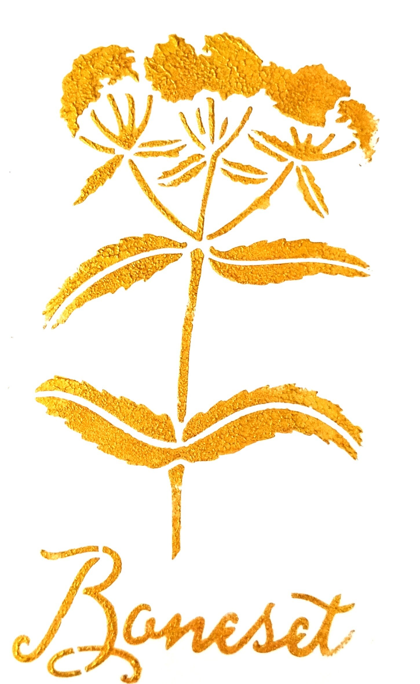 "Boneset" Gold Leaf Herb Painting in 5 x 7 White Mat
