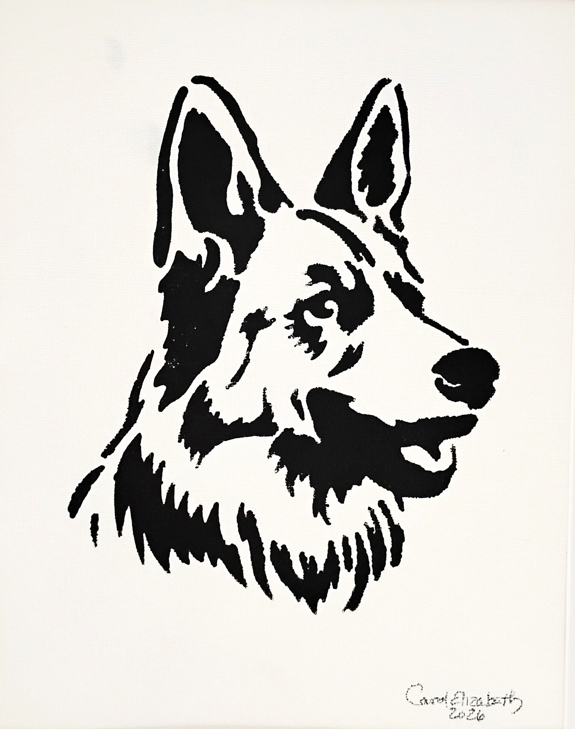 "German Shepherd" Canine Acrylic Painting in 11 x 14 White Mat