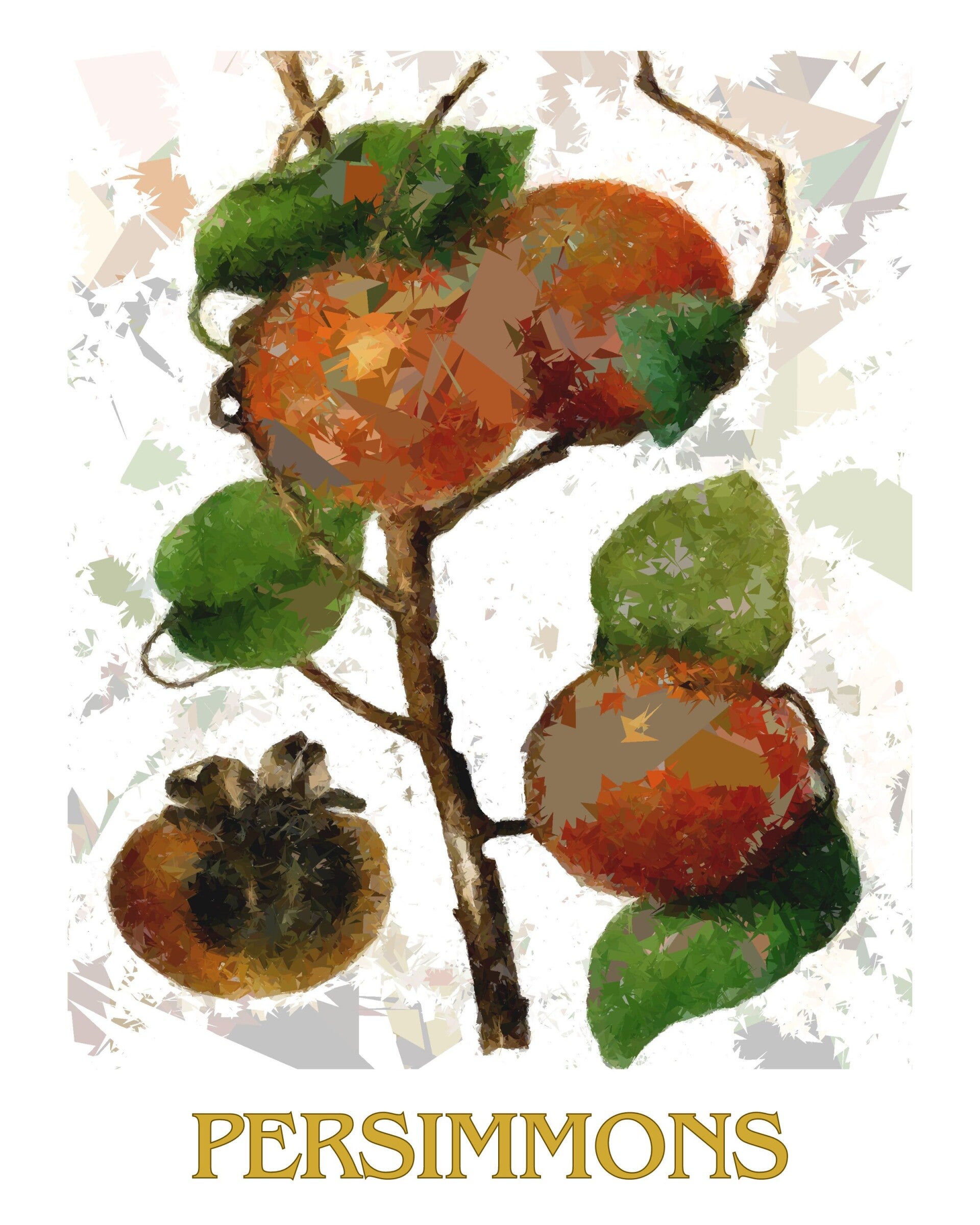 "Persimmons" Vintage Fruit Print Redesigned - Two Sizes