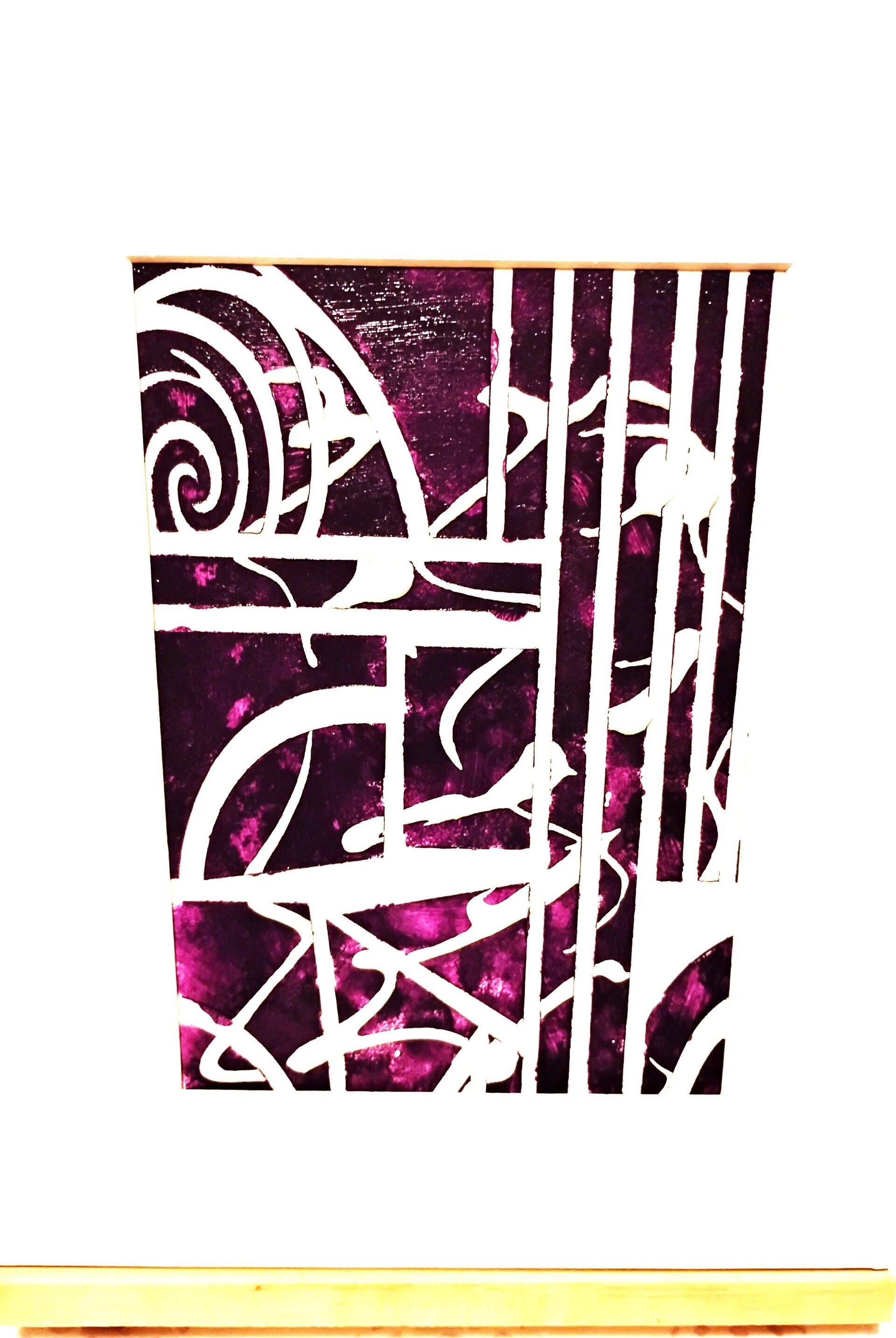 Purple Abstract Acrylic Painting in 8 x 10 White Mat
